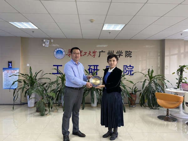 马乐向刘海龙赠送学校纪念品(陈桥芳 摄)