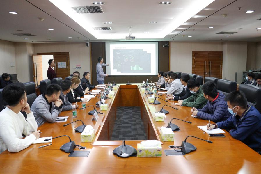 在讲座开始前,梁伟强与工程研究院科研人员和汽车与交通工程学院教师进行了科研成果交流与洽谈,重点了解了我校测试自动化平台、地温能监控系统、新能源汽车结构实训VR虚拟平台。
