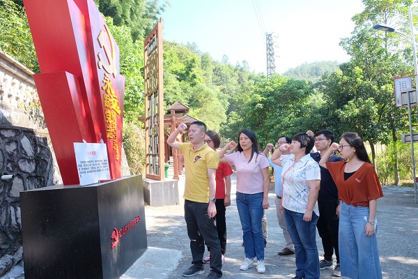 党员们来到红山村新时代文明实践站,举行了重温入党誓词活动。在党徽前,党支部书记、学科与科技处副处长林叙群带领全体党员,举起右手、握紧拳头,庄严宣誓:“我志愿加入中国共产党,拥护党的纲领,遵守党的章程,履行党员义务,执行党的决定,严守党的纪律,保守党的秘密,对党忠诚,积极工作,为共产主义奋斗终身,随时准备为党和人民牺牲一切,永不叛党。”随后在党徽下回忆了入党的初心和使命,增强党性意识。
