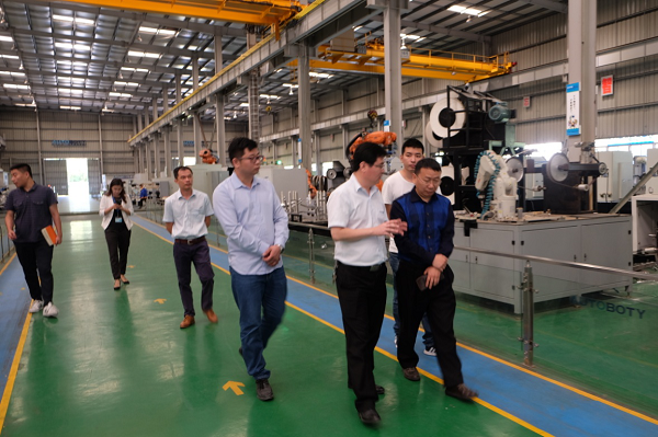 胡尕磊也表达了校企合作的期望,他表示,利迅达公司近年来在抛光、打磨、搬运、装配、焊接的工业机器人技术应用方面做了一些突破性的研究,希望构建一个智能设备共享平台,深入进行智能制造、机器视觉检测技术的研究,在自动装配生产线中为企业解决定位精度、打磨质量和检测精度不佳的问题。随后,在胡尕磊的带领下参观了该公司的工业机器人车间。