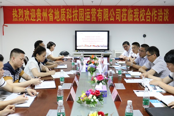 本网讯(记者 王磊 潘梓岚)6月13日,贵州省地矿局下属贵州省地质科技园运营有限公司总经理陈伟、贵州浅层地温能开发有限公司张浩一行五人来访我校工程研究院洽谈校企合作事宜,我校工程研究院院长马乐、学科与科技处副处长林叙群,工程研究院副院长陈方珍以及项目相关负责人、教师和技术人员出席了本次洽谈会。