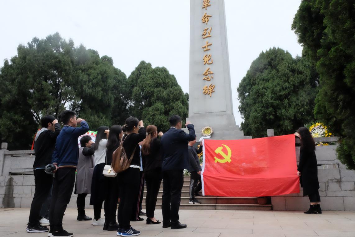 在纪念碑前,全体党员心怀敬仰之情,举行庄严的默哀仪式,为烈士默哀三分钟,以表达对先烈的无限哀悼。随后向烈士们进献鲜花,表达由衷的缅怀与追思。