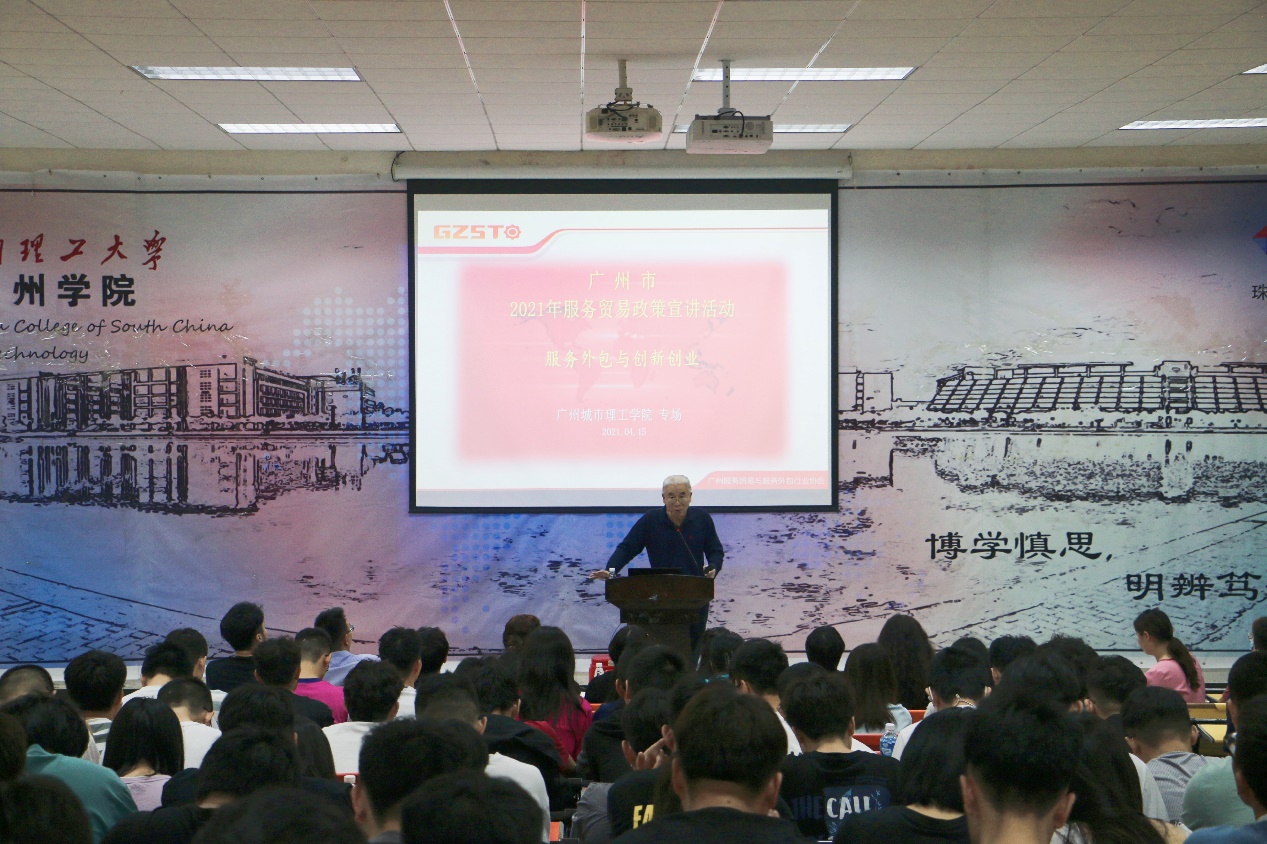 本网讯(记者 杨宜英) 为了助推服务外包企业加大引才育才力度,提高我校毕业生职业素养,4月15日上午,智能制造产业学院联合汽车与交通工程学院、机械工程学院在A7-101为学生开展了服务外包与创新创业讲座。本次讲座特邀广东省服务外包产业促进会、广州服务贸易与服务外包行业协会专家顾问王庆元主讲,工程研究院院长马乐,教务处常务副处长刘佳,工程研究院相关负责人,汽车与交通工程学院就业相关老师出席本次讲座。