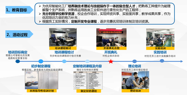 1、为优尼智能化工厂培养融技术理论与技能操作于一体的复合型人才,把熟练工种提升为能理解整个生产系统,并熟练运用各类工业软件进行柔性化生产的工程师;