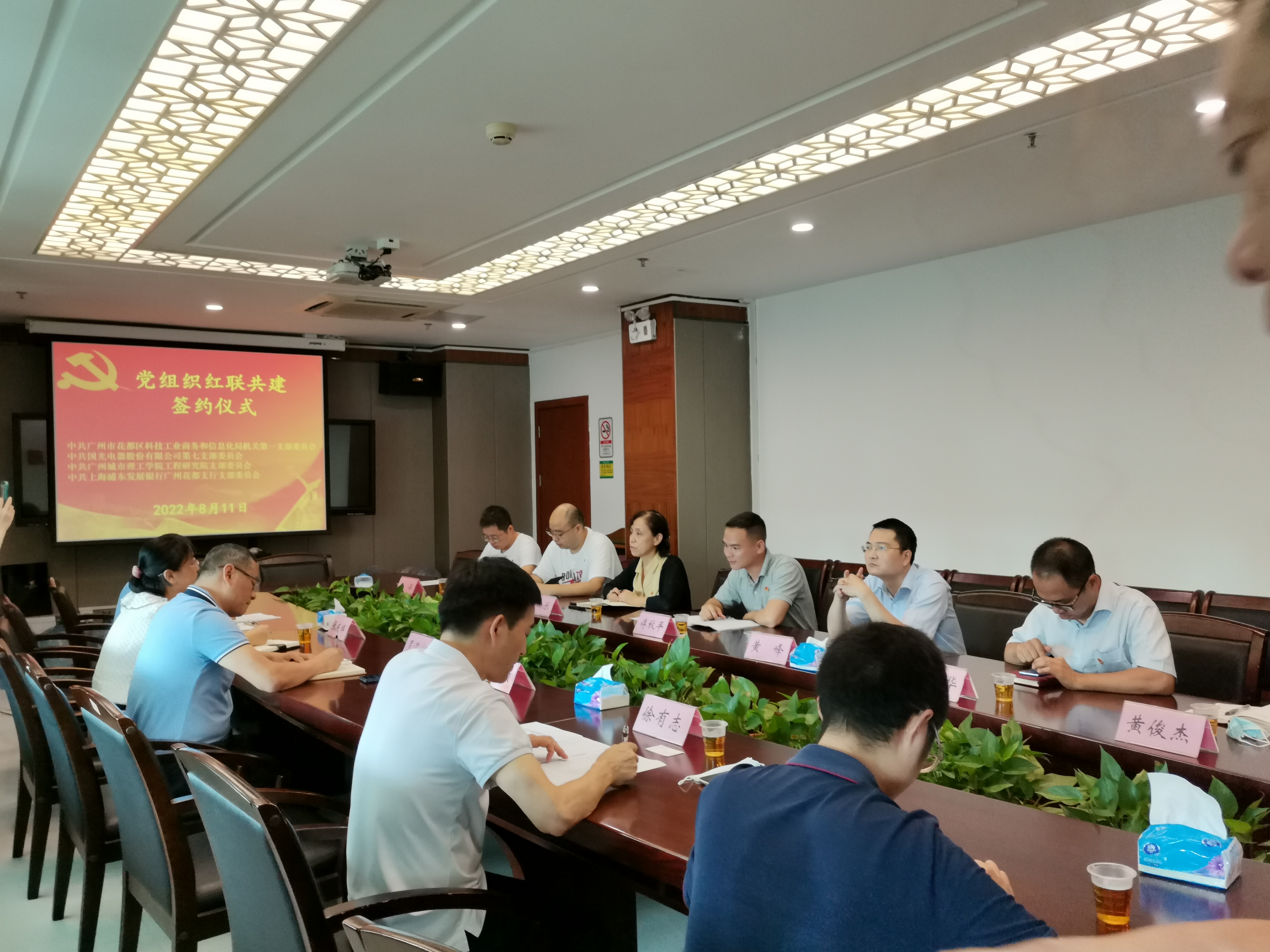 随后,共建单位共同签订了党组织红联共建协议书,花都区科工商信局党组副书记、局机关党委书记、副局长温和顺及党委委员与共建单位一同见证了签约过程。