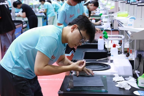 全国大学生金相技能大赛属于中国高等教育学会“全国普通高校大学生竞赛排行榜”中项目,受到全国高校的高度关注。金相技能是材料类专业学生必须熟练掌握的一项基本技能,是了解材料的一把钥匙。赛事旨在推进高校材料类专业实践教学的改革与创新,提高大学生对材料组织的分析能力和金相制样水平,培养工匠精神,增强知识综合运用能力和实践能力,为全国材料学科大学生提供一个互相交流和学习的平台。本次比赛通过现场抽签的方式从20钢、工业纯铁和球墨铸铁三种样品中抽出球墨铸铁和工业纯铁作为决赛样品,所有选手需要按照竞赛规则要求,三天内完成两个样品的制备。对于每一个指定样品,须在30分钟内对样品的指定端面完成磨制、抛光、浸蚀、显微镜观察等工序,最终制备出供评委评分的样品。