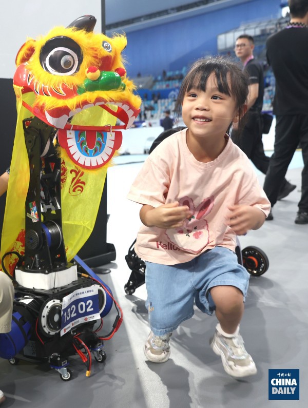 机器人醒狮表演吸引了小朋友的目光(邹红 摄)