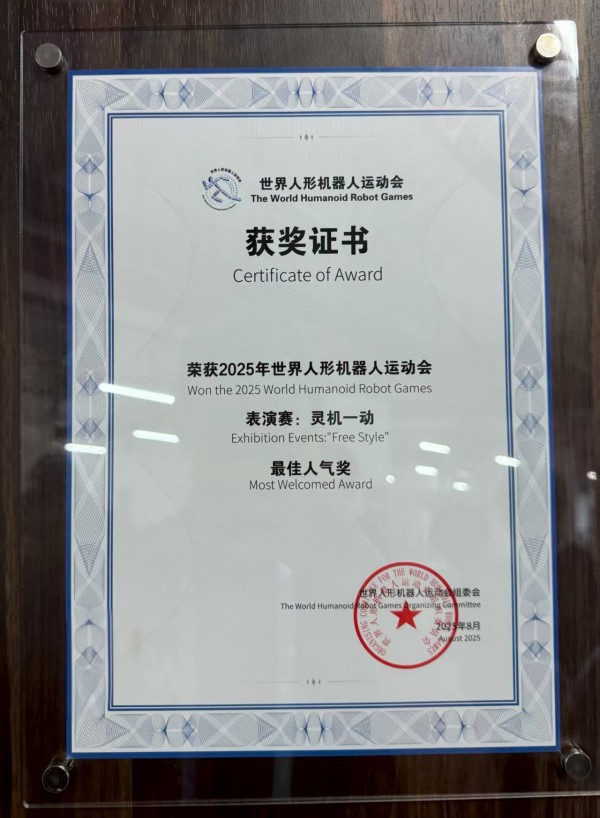 本网讯(记者 孙晓雨)8月14日至17日,全球首个以人形机器人为参赛主体的综合性体育盛会——2025世界人形机器人运动会在国家速滑馆“冰丝带”盛大举办。来自16个国家的280支参赛队伍、500余台机器人齐聚北京,共赴这场科技与体育交融的盛宴。我校机械工程学院/机器人工程学院“机器人野狼队”携自主研发的两台nova_1机器人参赛,在表演赛“灵机一动”项目中脱颖而出,斩获“最佳人气奖”,展现了我校在机器人与人工智能领域的前沿探索与育人成果。